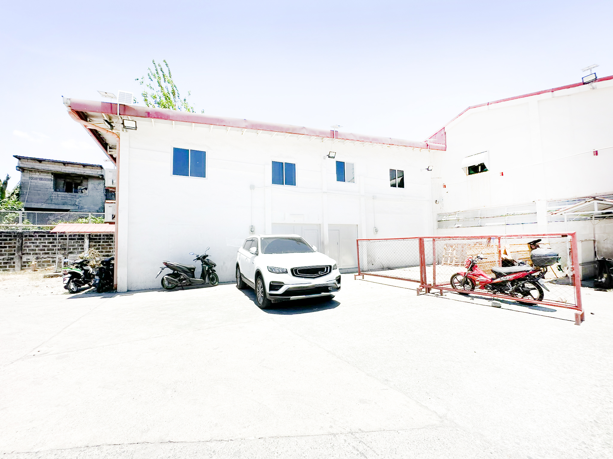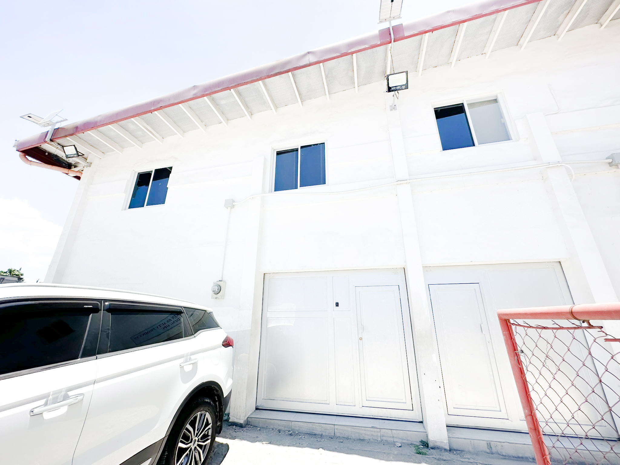 Inside a gated warehouse office compound with security